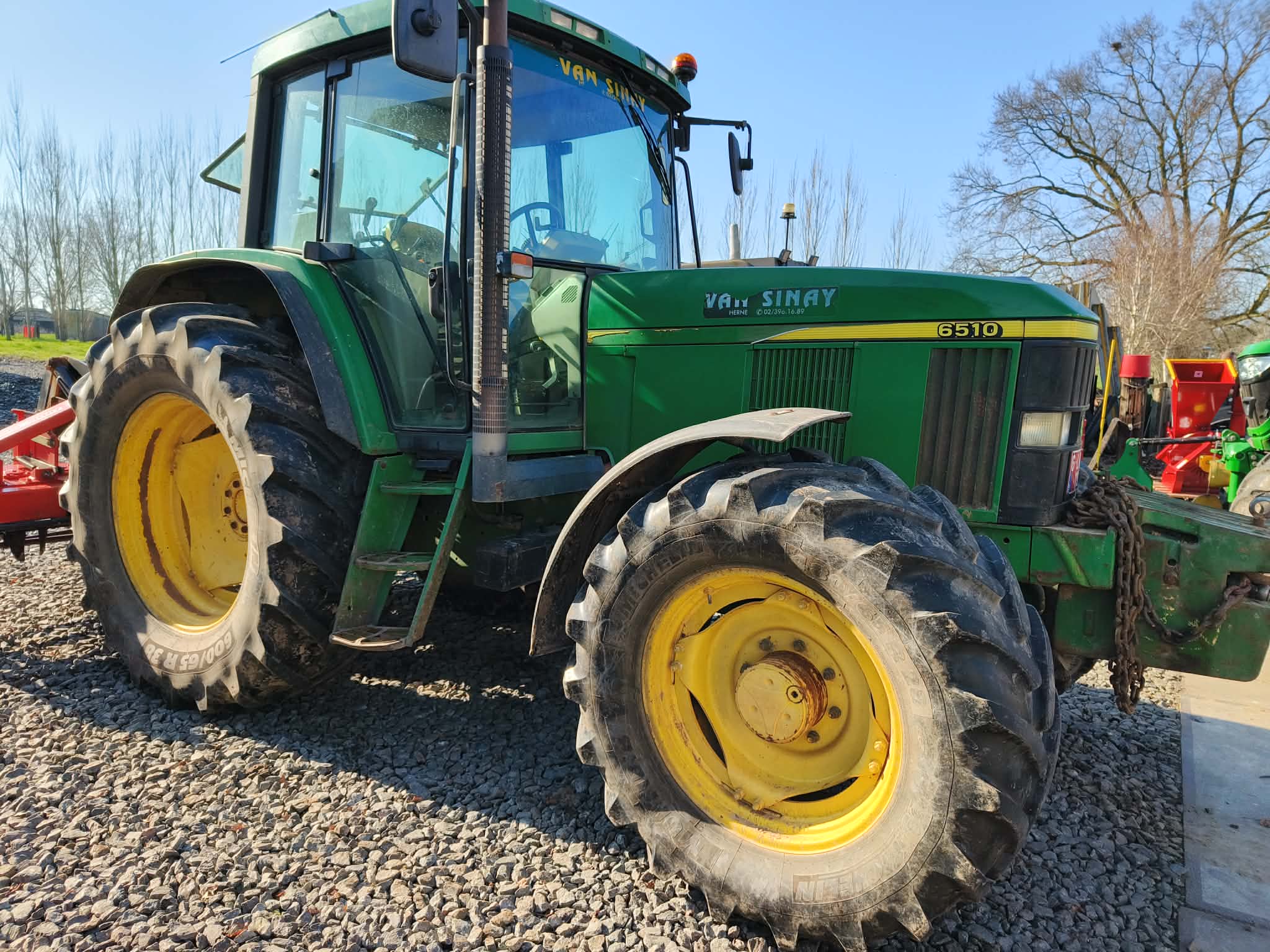 John Deere 6510, année 2000, PQ 40 km/h, pont avant suspendu, 2 distr. DE, pneus 480/65R28 et 600/65R38 à 50%, masses avant,